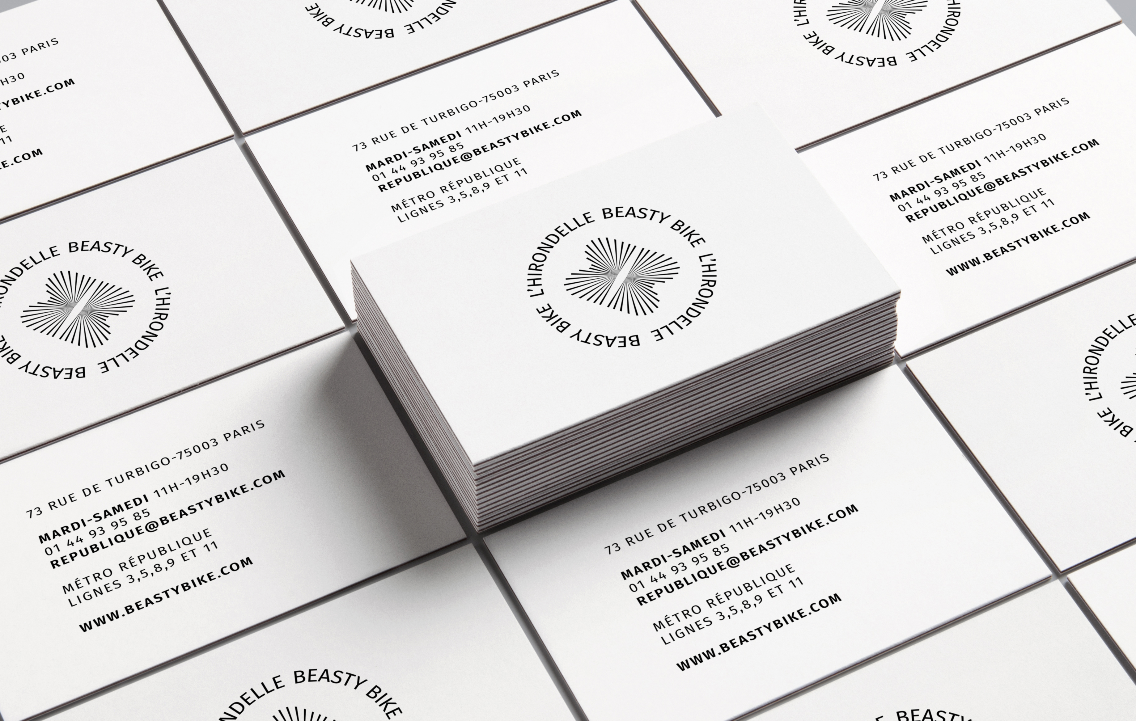 I designed a new visual identity of a brand called Beasty Bike. It is a bicycle dealer which has several shops called l’Hirondelle in France but the name of the website is still Beasty Bike. The challenge was to create a unique visual identity between the shops and the website by keeping both names. I designed a logo within a circle that can be turned. In one direction we can read the “h” of the “Hirondelle” and in the other we can read the double “b” of Beasty Bike.