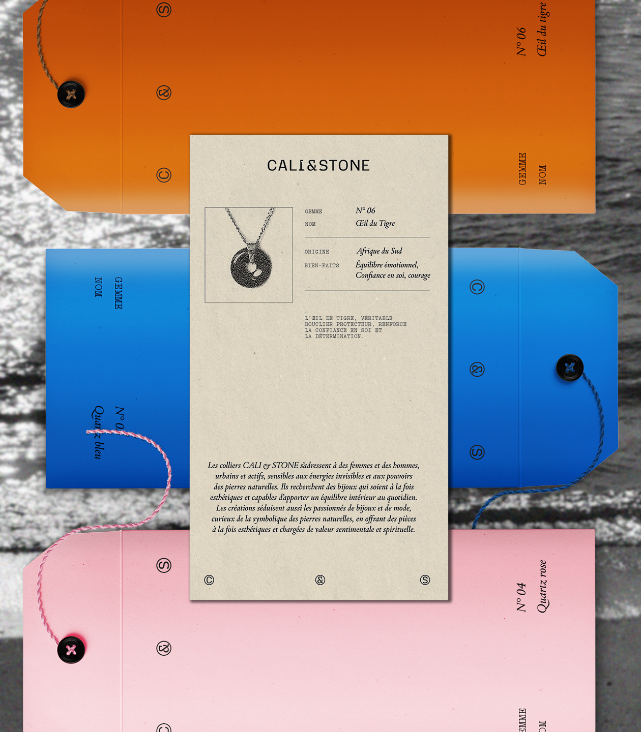 The brand offers six necklaces featuring natural stone pendants, each in a different color. Inspired by lithotherapy, every stone carries its own energy and benefits, which are revealed when worn. Cali&Stone embodies a solar, timeless universe that promotes serenity and emotional balance.