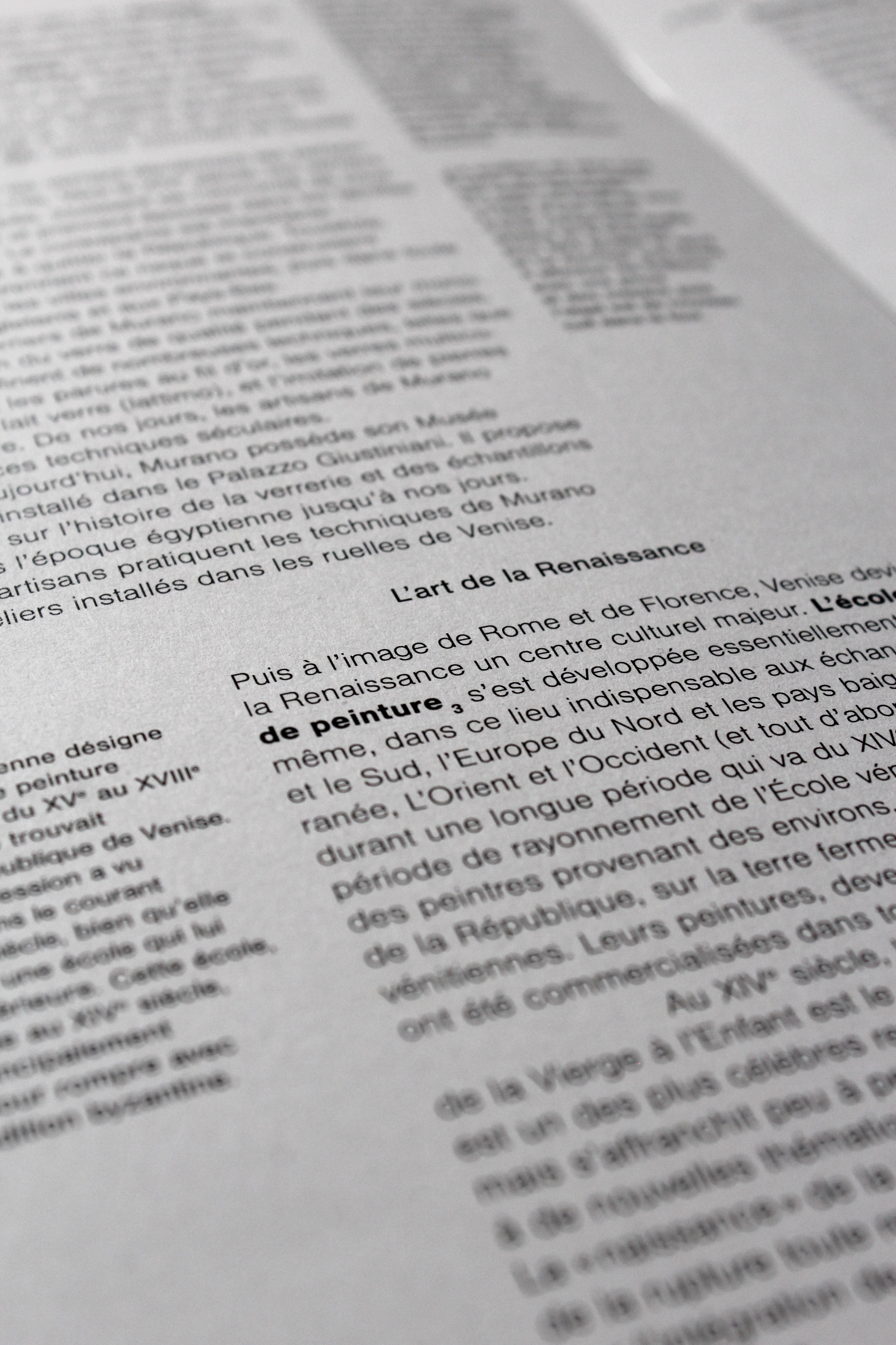 Creation of a book presenting an interior architecture project of an exhibition in the Arsenal of Venice. The title “La traversée” is a reference to Catalano’s work, from which this project is inspired. I designed a book with three chapters. For each one there is a smaller booklet entirely typographical that explains in details, terms found in the main book that mainly presents pictures.